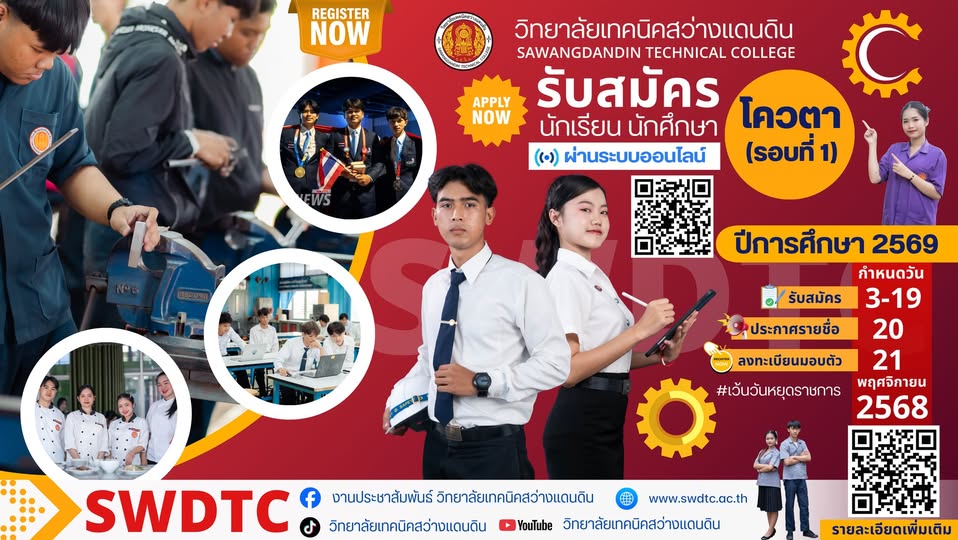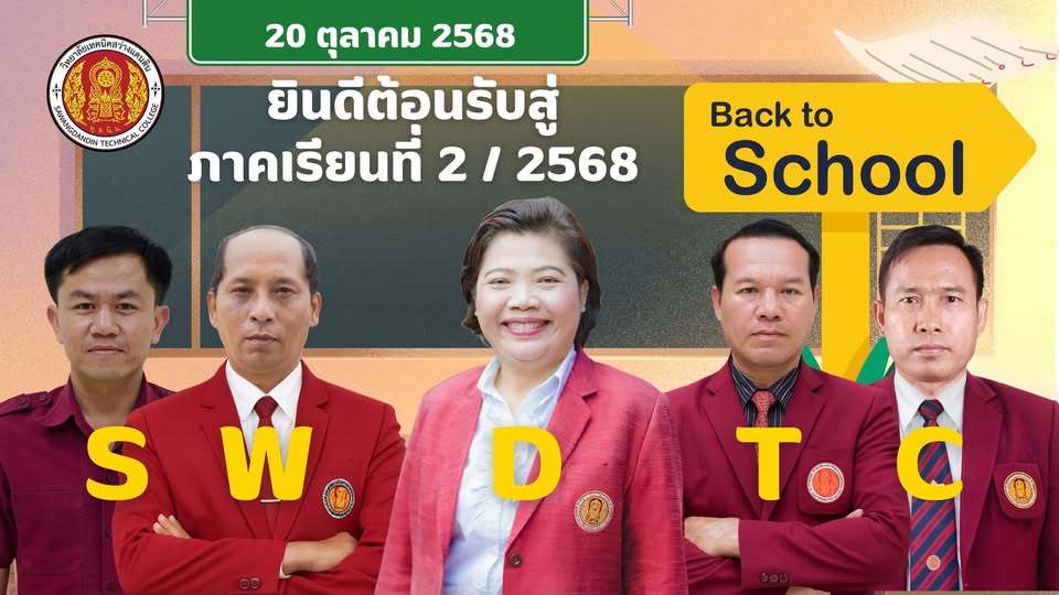 ยินดีต้อนรับนักเรียน นักศึกษา และผู้ปกครองทุกท่าน เข้าสู่รั้ววิทยาลัยเทคนิคสว่างเเดนดิน ในปีการศึกษา 2/2568