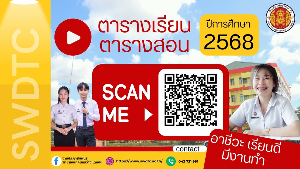 ยินดีต้อนรับนักเรียน นักศึกษา และผู้ปกครองทุกท่าน เข้าสู่รั้ววิทยาลัยเทคนิคสว่างเเดนดิน ในปีการศึกษา 2/2568