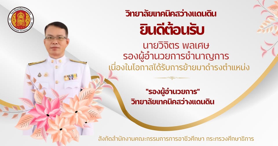 วิทยาลัยเทคนิคสว่างแดนดิน ยินดีต้อนรับ นายวิจิตร พลเศษ รองผู้อำนวยการชำนาญการ