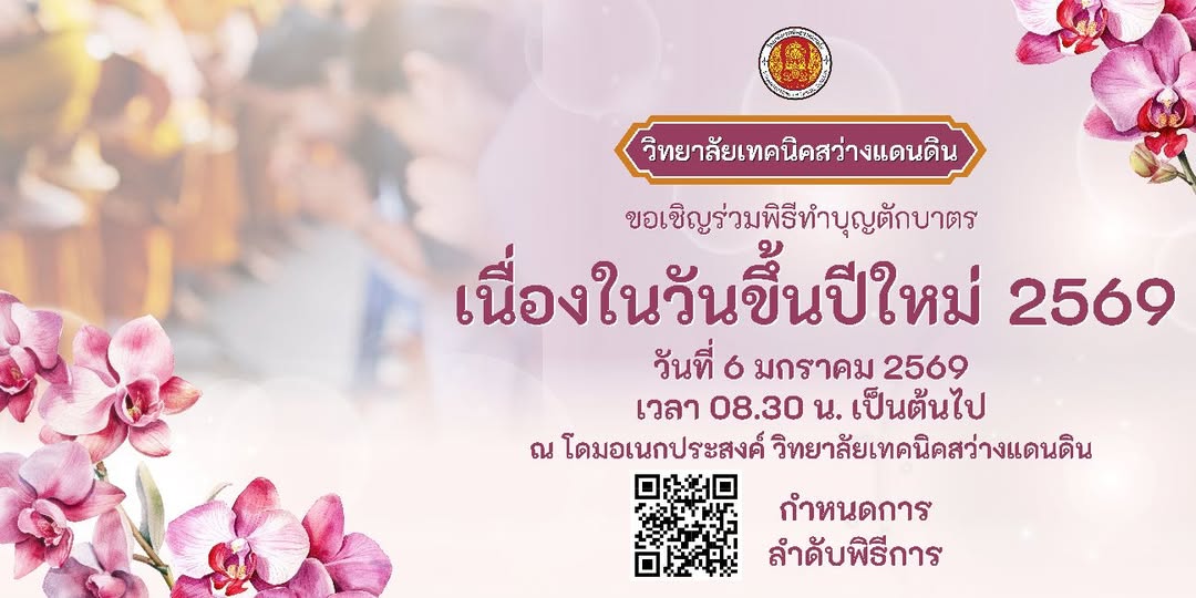 วิทยาลัยเทคนิคสว่างแดนดินขอเชิญร่วมพิธีทำบุญตักบาตร เนื่องในวันขึ้นปีใหม่ 2569
